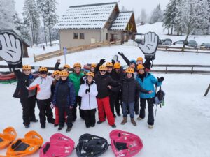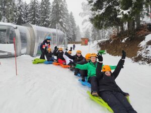 Du coté sports, glissades en luges, bouées et chenille sur neige étaient au programme. A la suite une balade en raquettes avec un guide de haute montagne leur a été proposée.