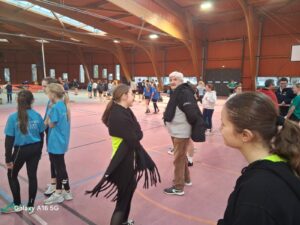 L’équipe Benjamines Filles (Lhéa Bossard-Tricoteaux, Lilou Lacoche, Loïs Coche, Raphaëlle Fournier et Silène Boucaut) monte sur la deuxième marche du podium avec un total de 389 points.