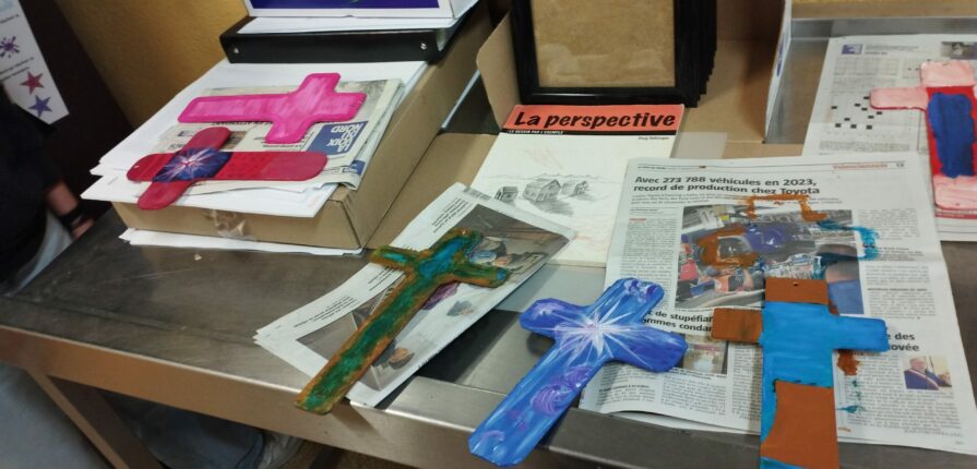 Quelques élèves volontaires de 4ème ont réalisé après les cours des croix qui seront installées dans le nouveau bâtiment inauguré