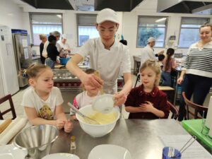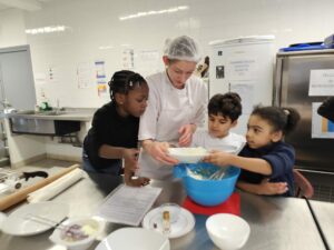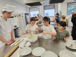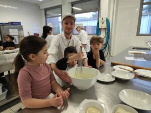 Les élèves de CAP ont dépassés leur maître. Ainsi ont-ils encadré les enfants de l’école Saint Jean-Baptiste de la Salle.Ils leurs ont à leur tour appris à fabriquer la galette de l’Épiphanie.