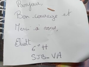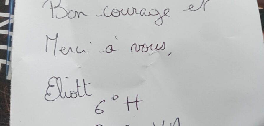 PS : un merci particulier à Elliot de 6H, qui a mis un mot d’encouragement bien sympathique !
