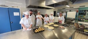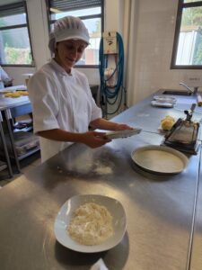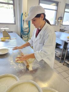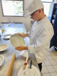 Quant aux élèves de 3I à dominante HAS (Hygiène Alimentation Service), ils se sont lancés dans la fabrication de pâte brisée.. ils ont pétri plusieurs fois des boules de pâte à la main et non sans mal… quant à abaisser la pâte de façon régulière dans le moule.. un grand moment ! Bravo à eux pour leur ténacité. et merci à Mesdames Decroix et Delsinne.