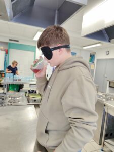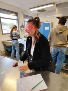Pour lancer le projet du Chef d’œuvre en CAP PSR (Production Service en Restauration), sur le thème de « La louche d’or » (faire découvrir à l’aveugle différents potages), un test à l’aveugle a été organisé. Les élèves ont testé 10 saveurs différentes : soja, chicorée, citron, fleurs d’oranger, cube de bouillon de volaille entre autres. Un bon moment entre grimaces, fous rires et dégoûts.