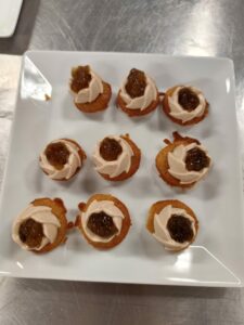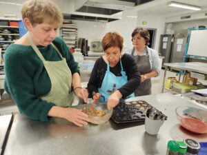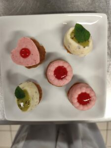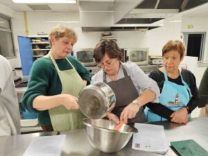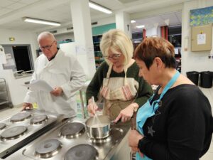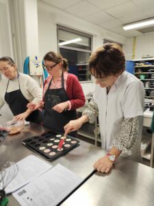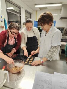 Et comme i n’y a pas que les jeunes qui souhaitent se former en cuisine, un cours a été proposé aux adultes du collège qui se sont transformés en marmiton et ont concocté de bons petits fours sucrés salés et des bûches salées surprise; un régal non seulement oculaire mais olfactif !