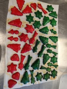 Ils en ont étudié la composition en Chimie puis l’impact sur la santé en SVT. Ils les ont ensuite utilisés en cuisine en confectionnant soit un gâteau Arc en ciel, soit des sablés de Noël.