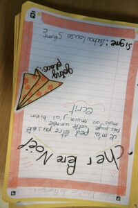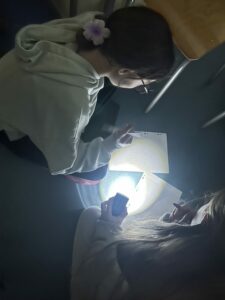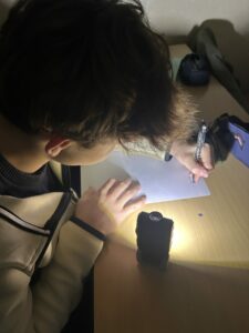 En Français, avec Mme El Sanwar, après l’étude d’un ouvrage sur la guerre de 14-18, les élèves se sont glissés dans la peau d’un poilu. C’est à la lueur d’une lampe de poche qu’ils ont imaginé la lettre que Gustave, soldat au front, aurait pu écrire pour sa femme Adèle afin de lui donner des nouvelles…
