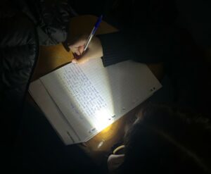 En Français, avec Mme El Sanwar, après l’étude d’un ouvrage sur la guerre de 14-18, les élèves se sont glissés dans la peau d’un poilu. C’est à la lueur d’une lampe de poche qu’ils ont imaginé la lettre que Gustave, soldat au front, aurait pu écrire pour sa femme Adèle afin de lui donner des nouvelles…