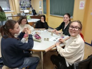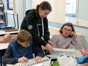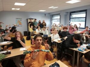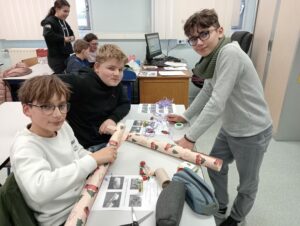 Les élèves de 3e MLVE ont animé la dernière heure de cours de plusieurs classes du collège et de la segpa, avec un atelier confection de crackers, qui sont un élément de décoration incontournable des tables de Noël Britanniques! Un partage de compétences toujours apprécié et des moments sympathiques d’échanges entre les jeunes !