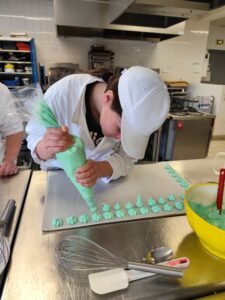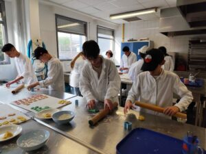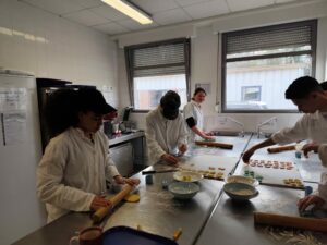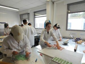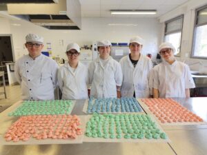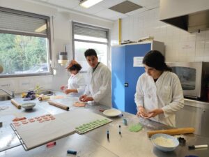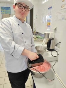 Dans le cadre du module 4e « Apprendre autrement », les élèves ont étudié les colorants alimentaires en cuisine. Ils en ont utilisés de différents types mais tous garantis sans OMG, sans noix et sans gluten.