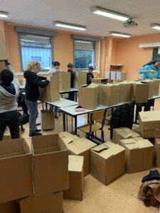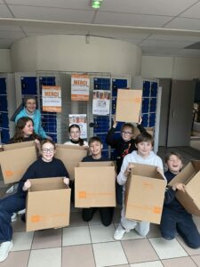 Les l’équipe de sixième de « un pas de plus »  ont préparé les cartons pour recevoir vos dons !
