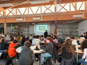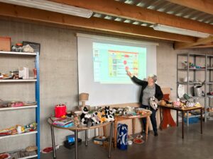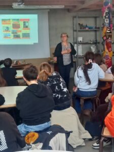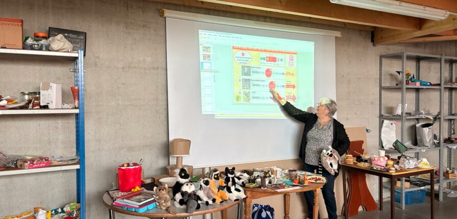 Lundi matin, Catherine Rhiat est venue dans la classe de Mme Huvelle, afin de présenter son association qui vient en aide aux enfants de Madagascar et aux lémuriens.