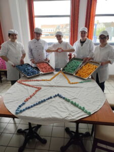 Les élèves de 3I avaient par ailleurs réalisé des meringues aux mêmes couleurs. Celles-ci ornaient les desserts du jour.