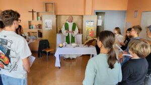 La célébration est présidée par le Père Frédéric Loyez par ailleurs professeur de Sciences Physiques.